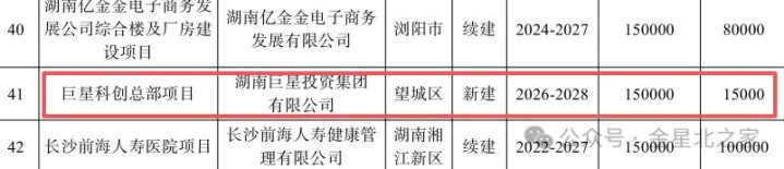 目前巨星集团科创总部正处于前期筹备与基础施工阶段,且已列入2026年长沙市重点建设项目,年度计划投资1.5亿元。